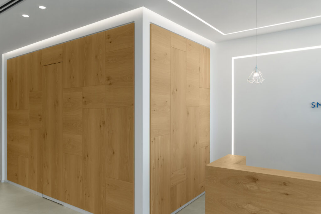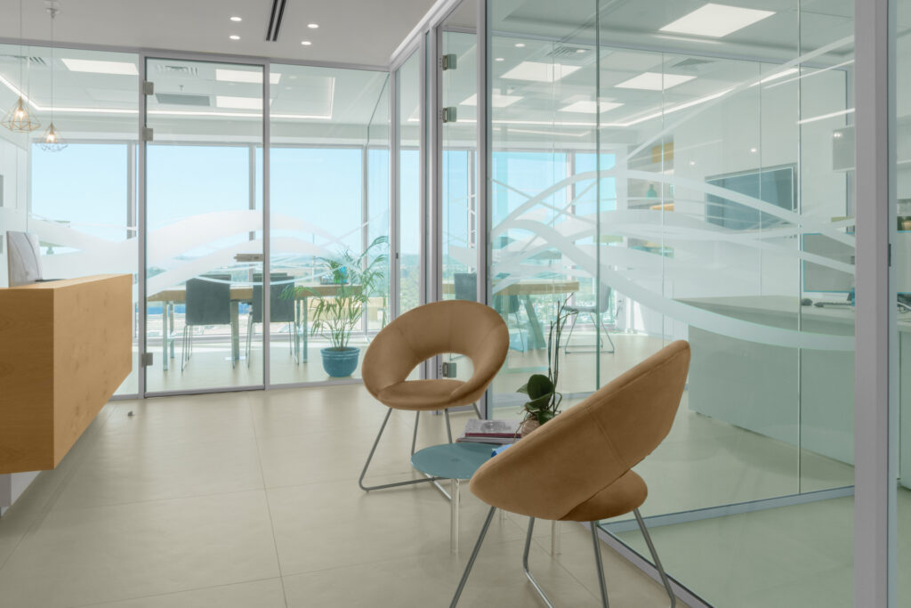 בפרויקט זה הייתה בקשה מצד הלקוחות לקבל מרחב עבודה בעל אווירה מוקפדת במיוחד שמשדרת יוקרה. איכויות החלל נובעות משילוב של מחיצות זכוכית שקופות ופסי תאורת לד נסתרים המהדהדים בהמשכיות בכל המשרד. השימוש בשקיפות כחלק דומיננטי בעיצוב הוביל לחשיבות רבה ביצירת רצף עיצובי; באלמנטים של ריהוט ומידוף לכל אורך הקיר האחורי, בהסתרת הכניסה למטבחון באמצעות נגרות בייצור מיוחד, אשר הפכה כחלק מחיפוי הנגרות שעל הקיר ושל ארון האחסון אשר בהמשכו. מנעד הגוונים הבהירים של לבן, אפור ועץ טבעי, תוך הכנסה של כמה שיותר אור טבעי ושקיפויות למשרד, שוטפת אותו באור מזמין ומייצרת אווירה נעימה, יוקרתית ואלגנטית.